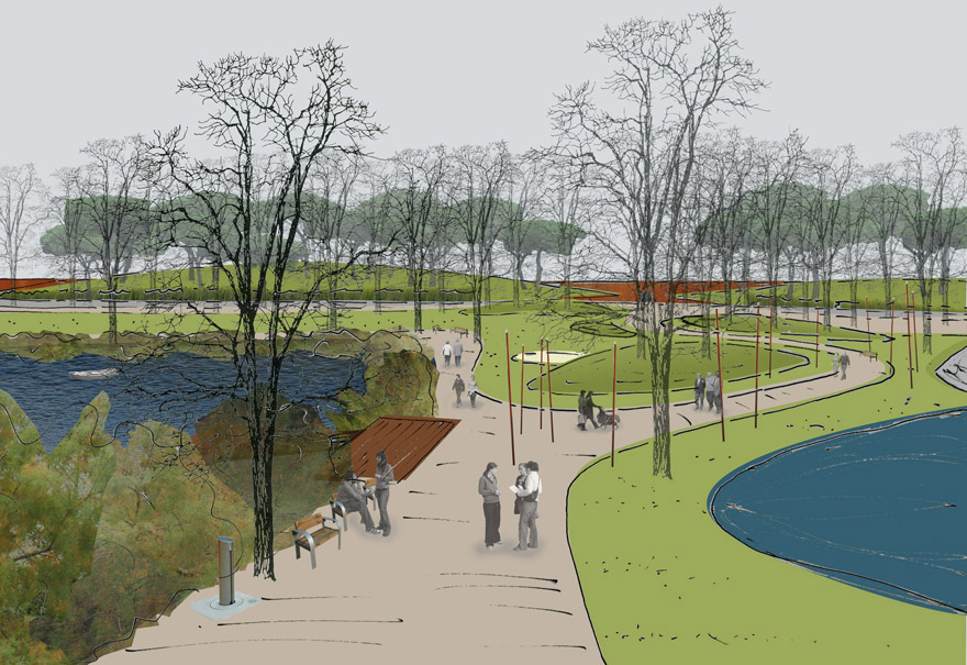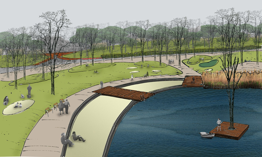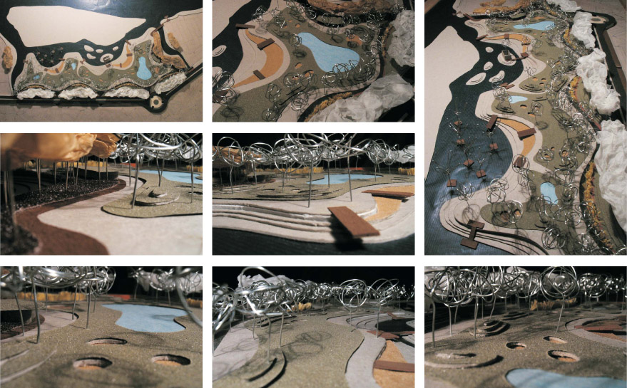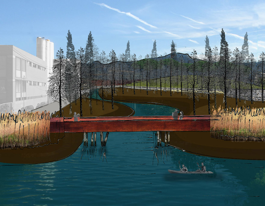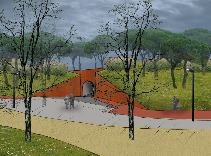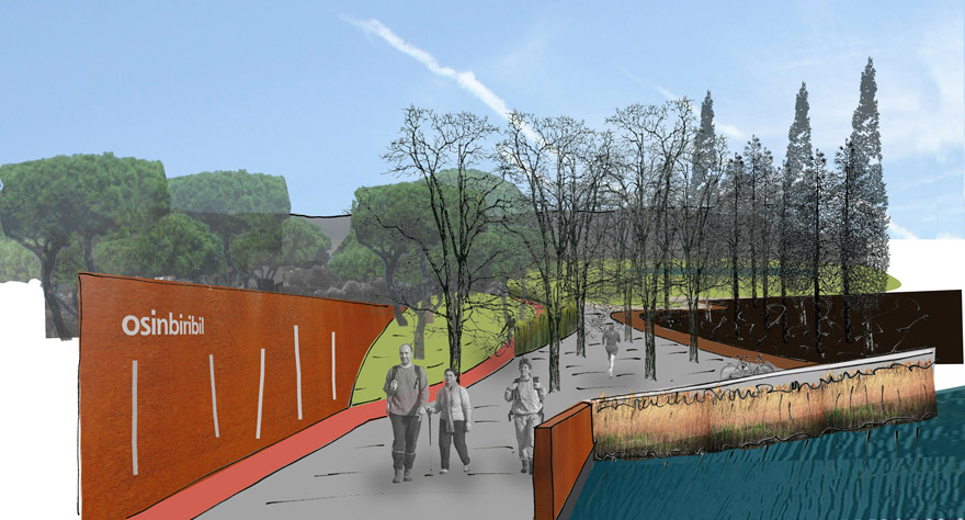 En una amplia zona robada a la marisma, bañada por el río Bidasoa, en Irun, hoy se despliegan un sinfín de huertas, paisaje creado de manera antinatural por el hombre. Se propone devolver gran parte del terreno a su ser integrándolo en el paisaje que un día fue y dándole una utilidad de parque urbano. Para ello se plantea un proyecto en el que hay zonas diferenciadas, partiendo de una parte muy natural, la mas cercana al agua e ir convirtiéndola en mas urbana según se acerca a la ciudad. Así nos encontramos con un borde de marisma recuperado con zonas que se inundan, playas, que luego se convierte en una zona de colinas y dunas que da paso a un carril bici y paseo mas pétreo uniéndolo con la ciudad.