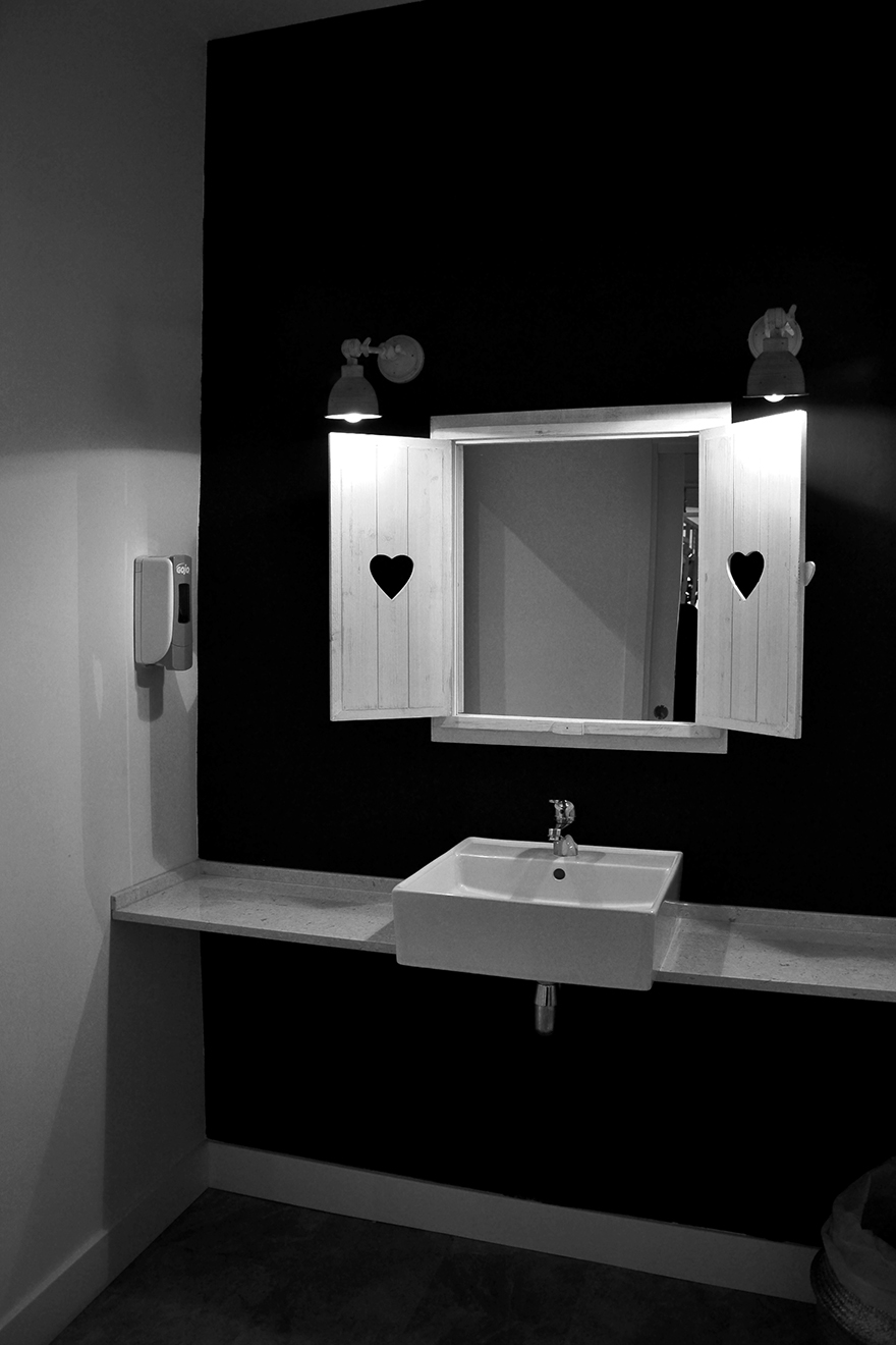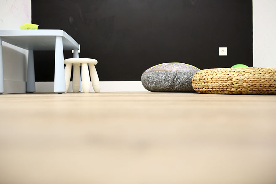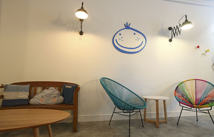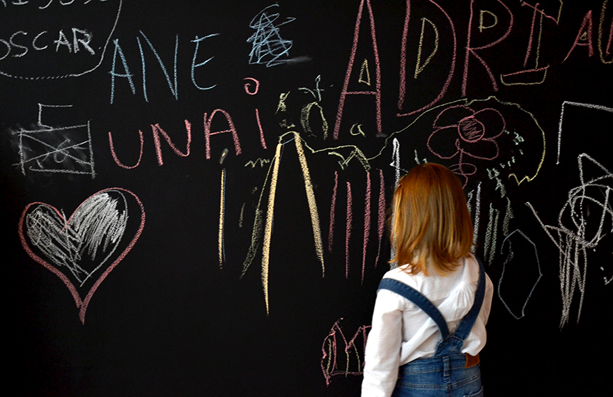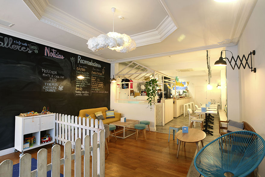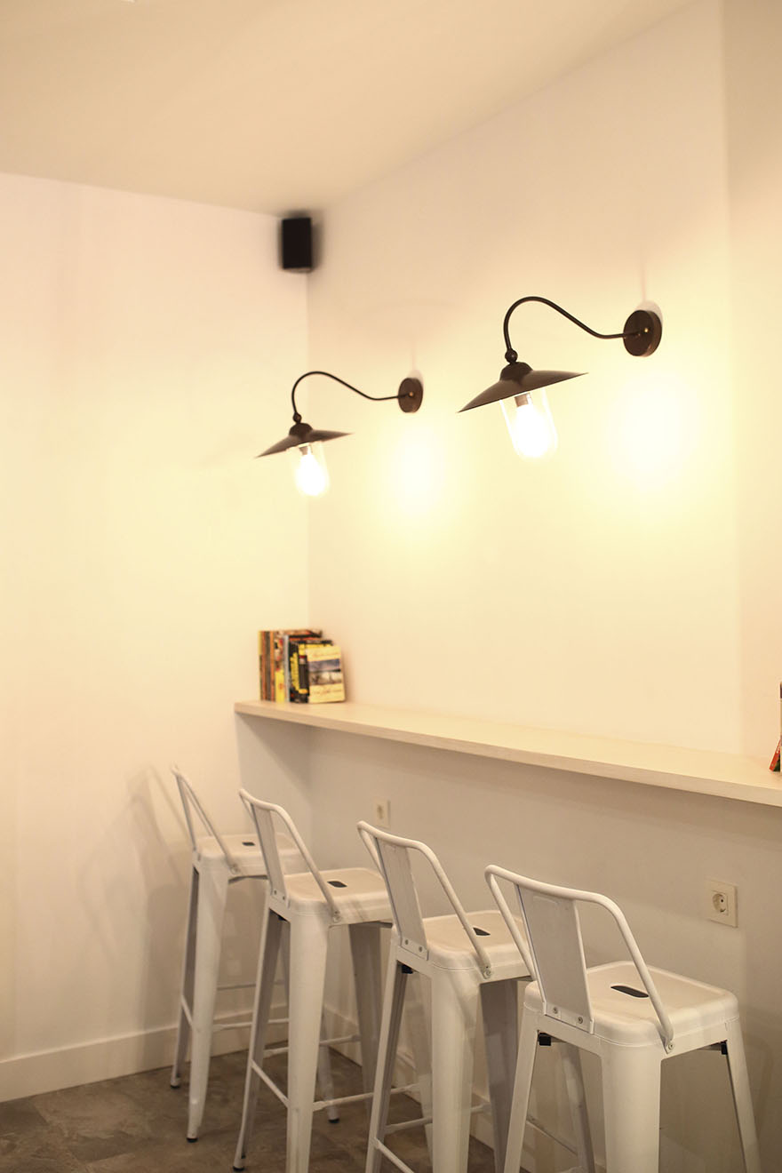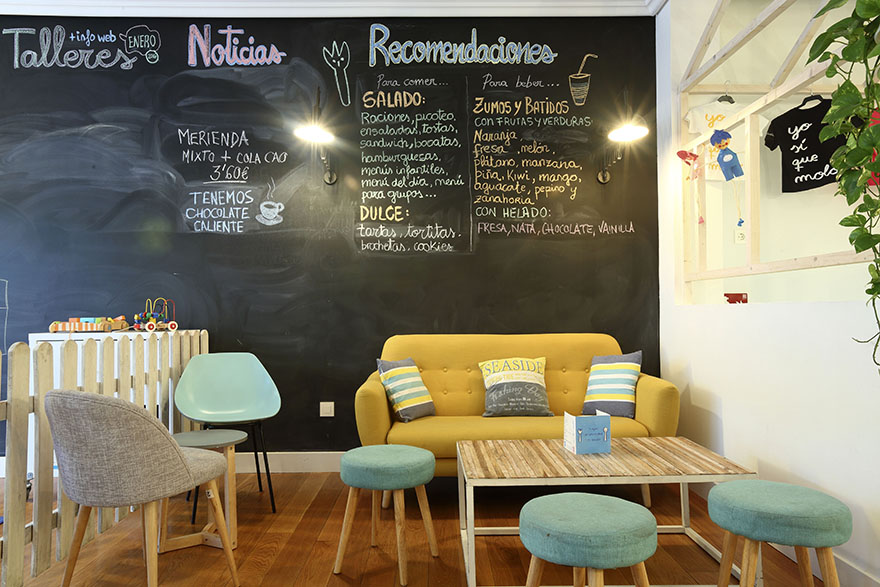 Es un local pequeño, ya que la zona pública no llega a 50m2, lo que lo hace acogedor y familiar. Se ha elegido una iluminación cálida y tenue que aporta intimidad a los espacios. Todo es blanco lo que hace que sea un lugar armonioso y tranquilo. Una gran pared de pizarra les encanta a los más txikis que desde el minuto cero están con las tizas dibujando como locos. Se han elegido materiales calidos como la madera y mobiliario que haga sentir un ambiente hogareño, la idea era hacer sentir a los clientes como en casa.