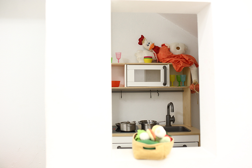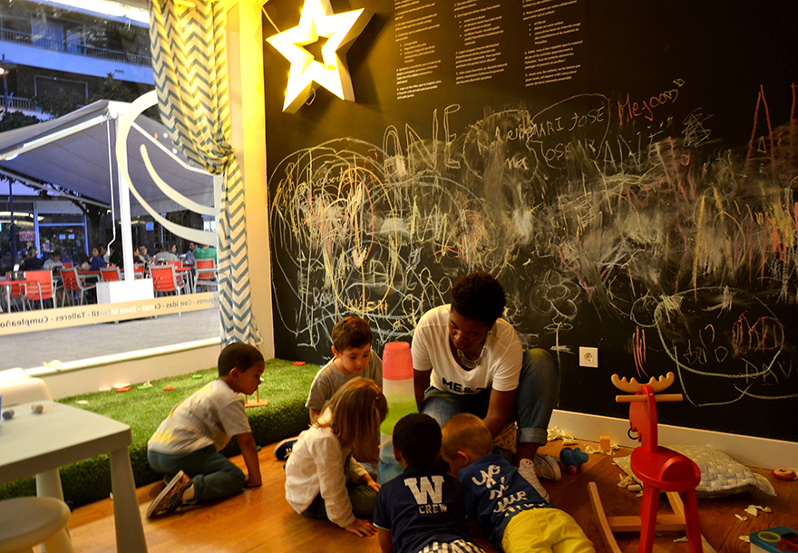 En la planta principal hay una zona infantil para que los más pequeños se diviertan jugando, donde se hacen cuentacuentos, música en directo… se pueden encontrar diferentes juguetes de madera, libros y cuentos, mobiliario infantil para pintar…