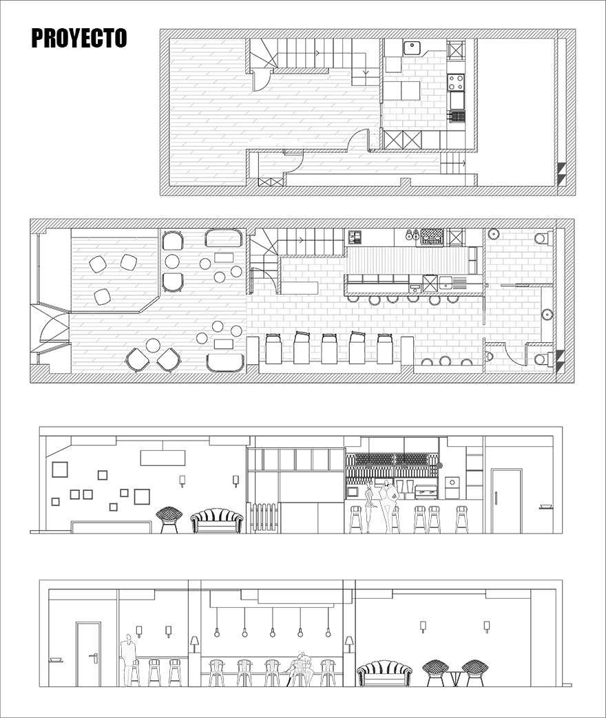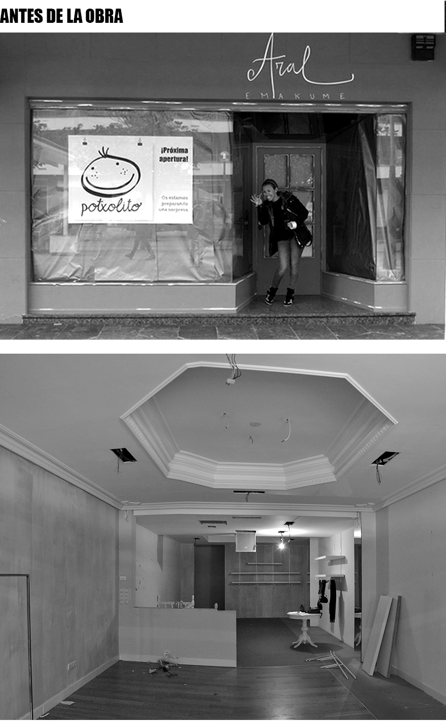 El local está situado en Luis Mariano, una calle peatonal del centro de Irun. Anteriormente era una tienda de ropa y lo reformamos, manteniendo las escaleras de acceso al sótano.